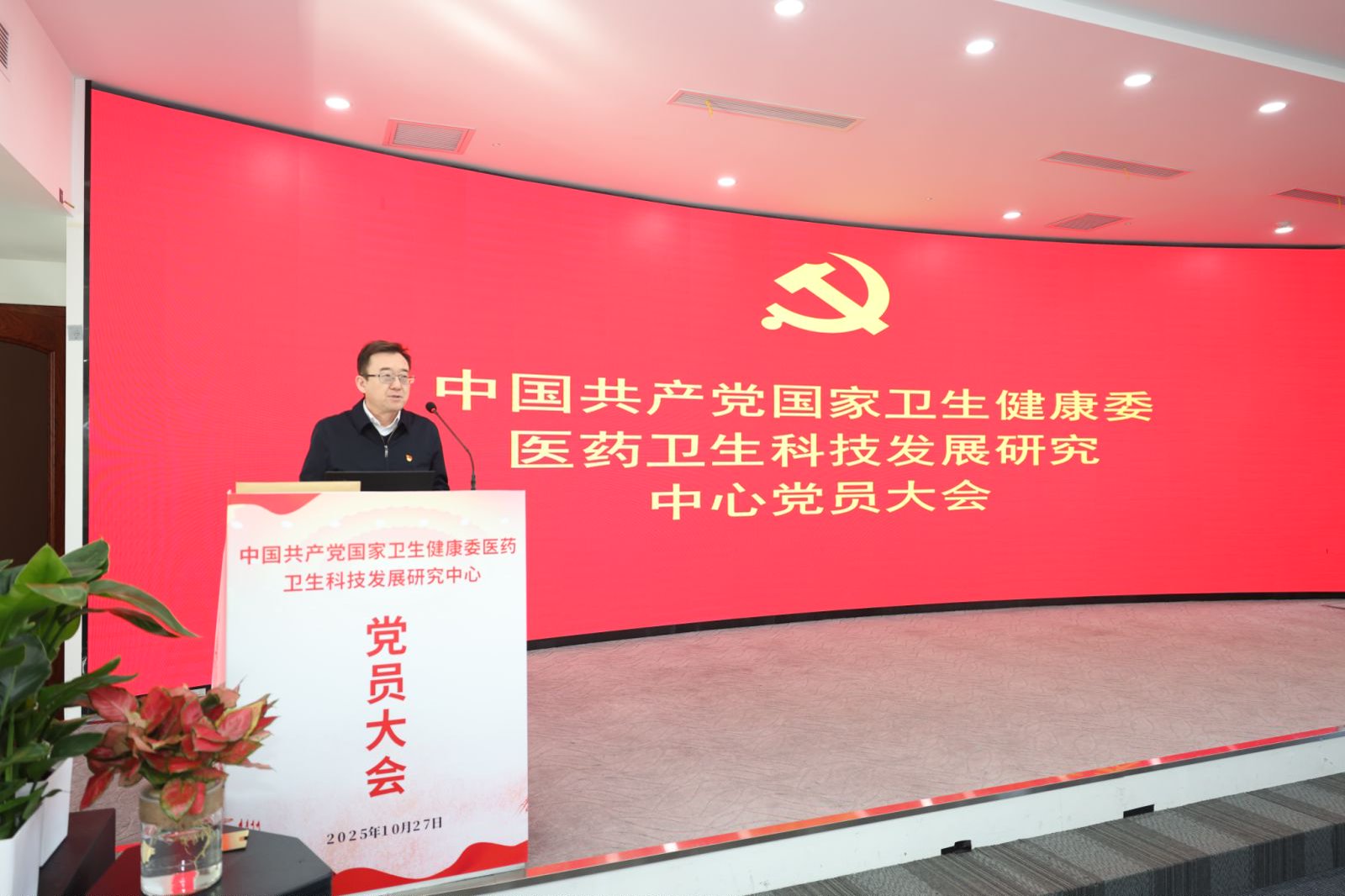2025年10月27日,国家卫生健康委医药卫生科技发展研究中心党员大会胜利召开,国家卫生健康委直属机关党委常务副书记曾晟堂出席会议并讲话,中心全体党员同志参加会议。
