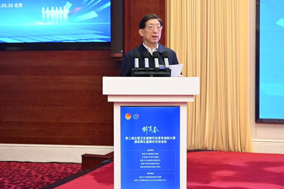 3月26日,“创青春”第二届全国卫生健康行业青年创新大赛颁奖典礼暨展示交流活动在京圆满举办。国家卫生健康委党组副书记、副主任曾益新出席活动,为获奖项目颁奖并讲话。